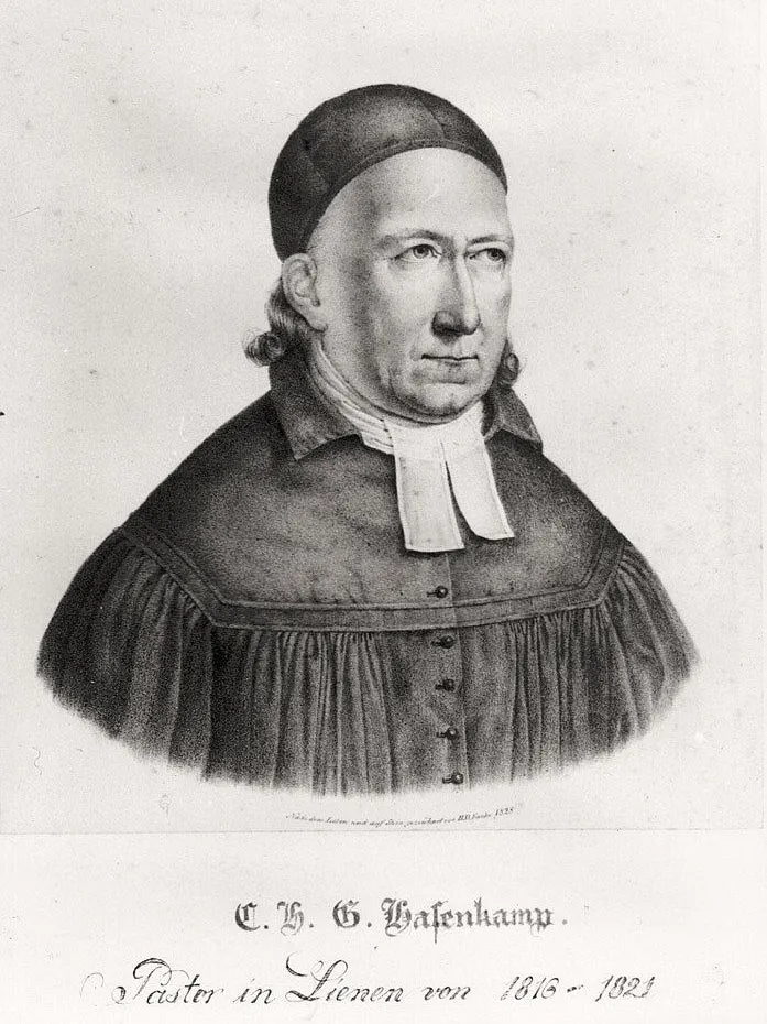 Einer unter den Pfarrern des 19. Jahrhunderts hebt sich aus der Schar der anderen durch seine Eigenart heraus. Es handelt sich um Christoph Hasenkamp (1816-21). Er war nur fünf Jahre in Lienen und bei seinem Dienstantritt nicht einmal von der ganzen Gemeinde erwünscht. Er war ein Vertreter des Pietismus, einer Frömmigkeitsbewegung, die auf die Herzen der Menschen zielte. Hasenkamps Wirken hat seinen besonderen Ausdruck gefunden in dem sogenannten "Blauen Liederheft" zum Konfirmationsgottesdienst. Das waren unwahrscheinlich lebendige von Schüler- und Katechumenenchören im Verein mit den Konfirmanden und der Gemeinde gestaltete Gottesdienste.